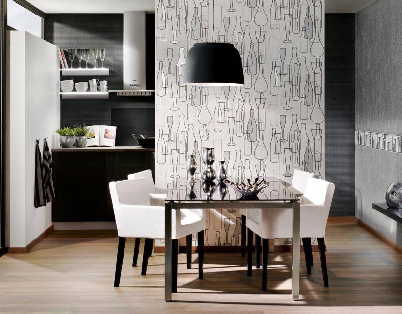 Выделить место, где семья будет принимать пищу, можно по-разному. Чаще всего это делают, меняя цвет (фактуру) участка стены или пола. Дополнительным способом зонирования служит освещение.