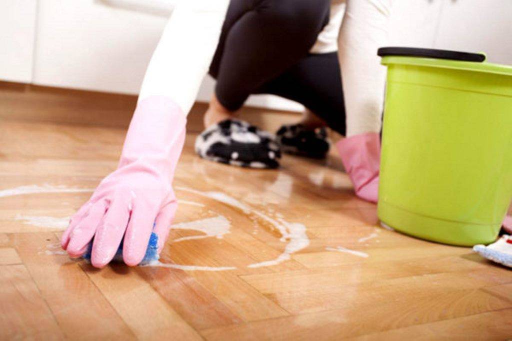 Его следует развести в теплой воде, после чего добавляем чистящее средство или водку. Это поможет настилу вновь заблестеть.