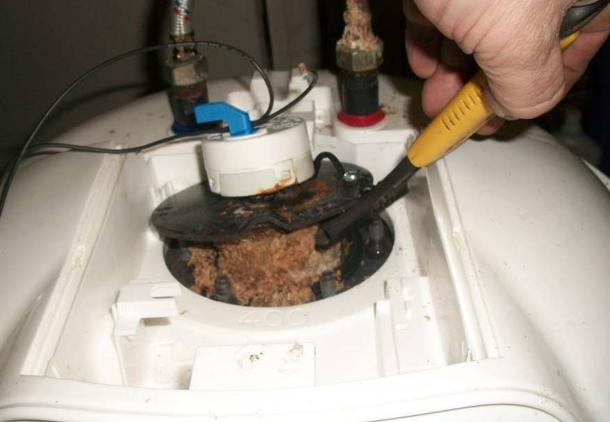 Процесс чистки водонагревателя заключается в снятии толстого слоя известкового налета. Это необходимо делать по двум причинам: