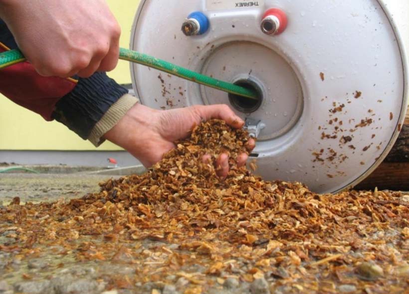 Кроме самого ТЭНа необходимо почистить бак бойлера. При удалении накипи полученные отходы нельзя смывать в канализацию. Лучше их выбросить в мусор, чтобы система не засорялась.