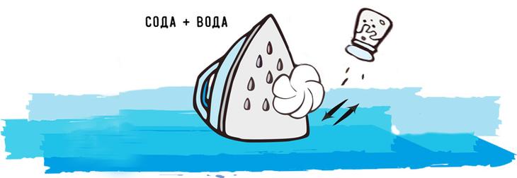 Важно! Не стоит чистить содой утюг с тефлоновой поверхностью. Его можно очищать только жидкими или кремообразными средствами (перекисью водорода или специальным карандашом для утюга)