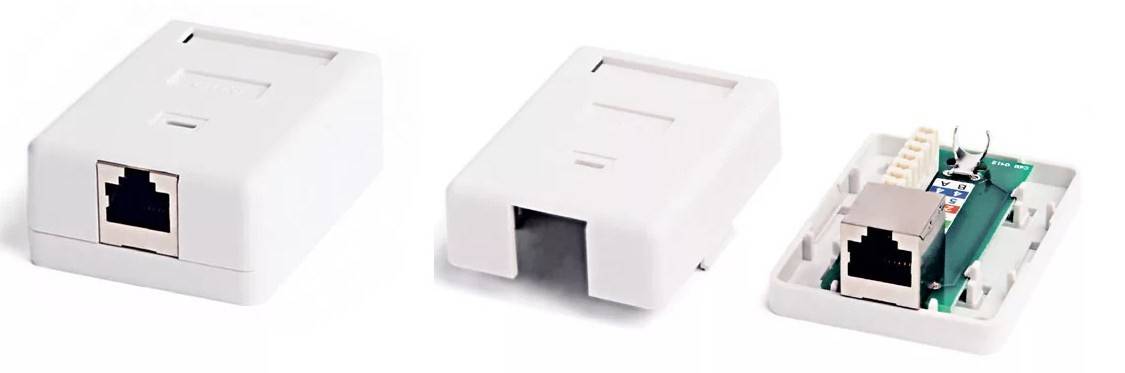 - А розетки для наружного применения предполагают, что интернет-кабель проходит по поверхности стены в переделах видимости. Розетки поверхностного монтажа внешне похожи на обычные телефонные розетки, которые крепятся к какой-либо поверхности.