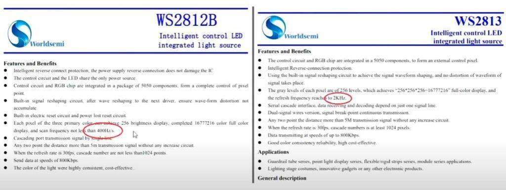 Вот очень наглядный эксперимент с такими светодиодами в динамике. Подключите отрезок ленты с двумя разными чипами и попробуйте помахать ими из стороны в сторону.