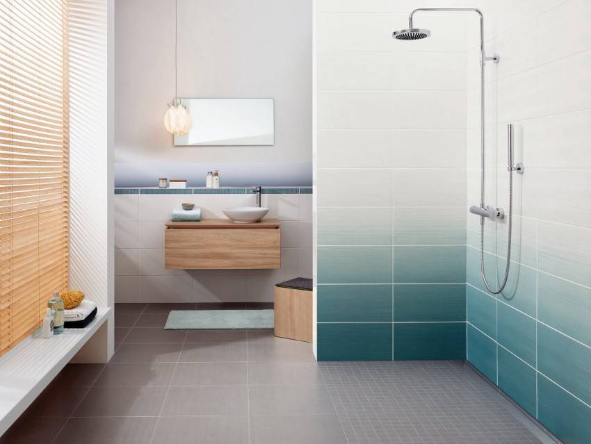 При выборе покрытия стоит учитывать и особенности помещения. Так, например, кафель холодных оттенков (голубой, зеленый) лучше использовать в светлых, теплых помещения. Холодные оттенки лучше разбавить теплыми тонами: бежевым, желтым.