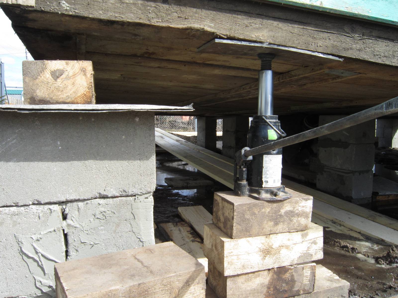 На подготовительном этапе важно избавить постройку от тяжелых вещей и предметов мебели. Более того, пол тоже должен быть подвергнут разборке. Для того чтобы поднять дом на фундамент, следует с двух его сторон установить домкраты на расстоянии, равном 0,5 метра от углов