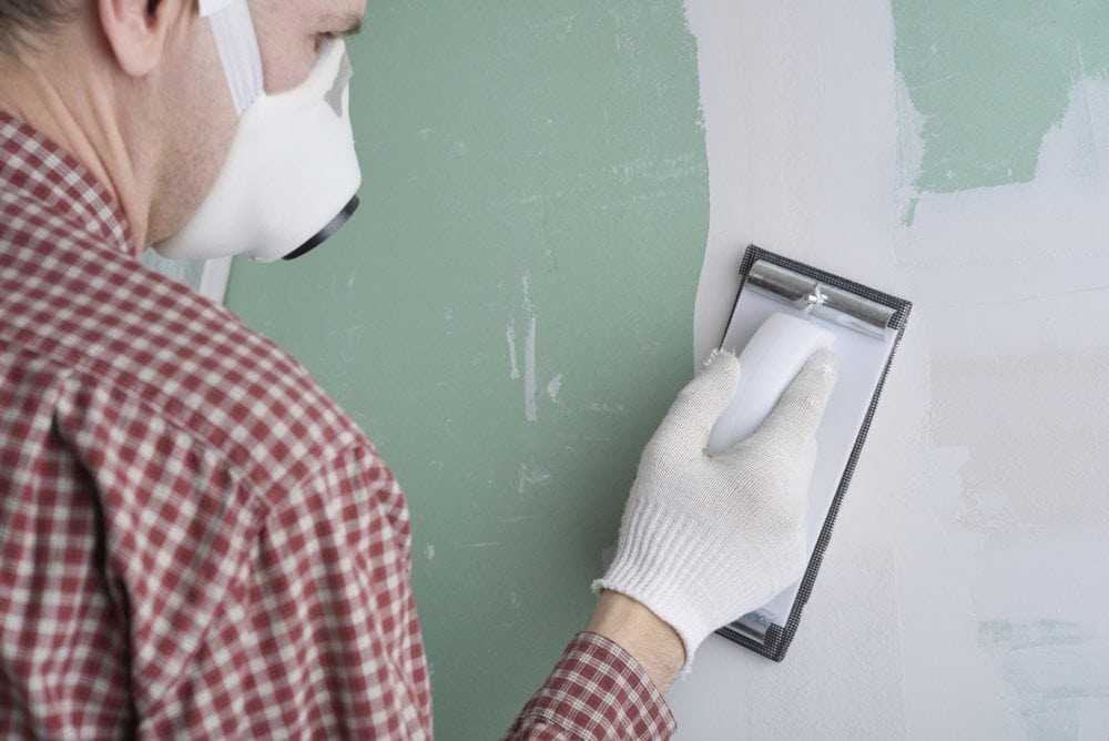 После устранения дефектов приступают к обработке стен наждачной бумагой, при этом не нужно пытаться полностью счистить краску – важно добиться шероховатости.