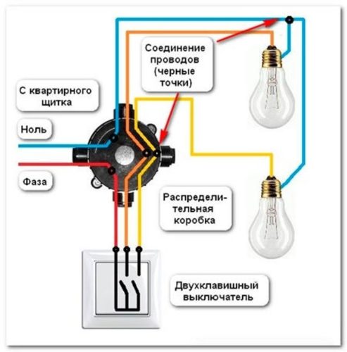 Схема подключения двухклавишного выключателя к люстре