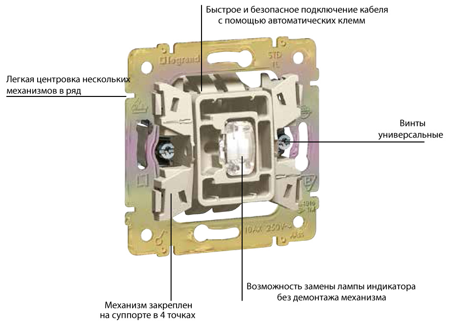 - Если сломался выключатель старого образца, Вы конечно можете его починить, но в этом нет смысла, т.к. каждая деталь со временем изнашивается, а в электрике очень опасно эксплуатировать старые выключатели и розетки, тем более, если они частенько выходят из строя. На сегодняшний день даже у таких лидирующих фирм, как легранд есть недорогие, но надежные изделия даже с подсветкой, цепочкой (шнурком) либо регулятором освещения.