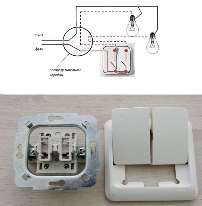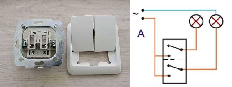 Конструкция и принцип действия двухклавишного выключателя