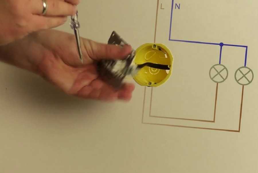 Схема подключение проводов проходного выключателя в распредкоробке