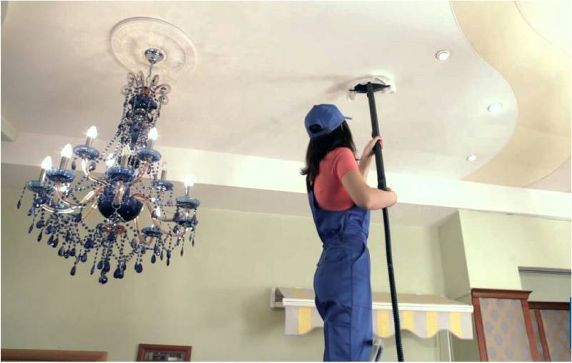 - В сложных случаях лучше воспользоваться услугами клининговой компании или услугами компании по установке потолков (некоторые фирмы представляют услуги по уборке). Профессионалы чистят натяжные конструкции специальными пылесосами и моющими составами.