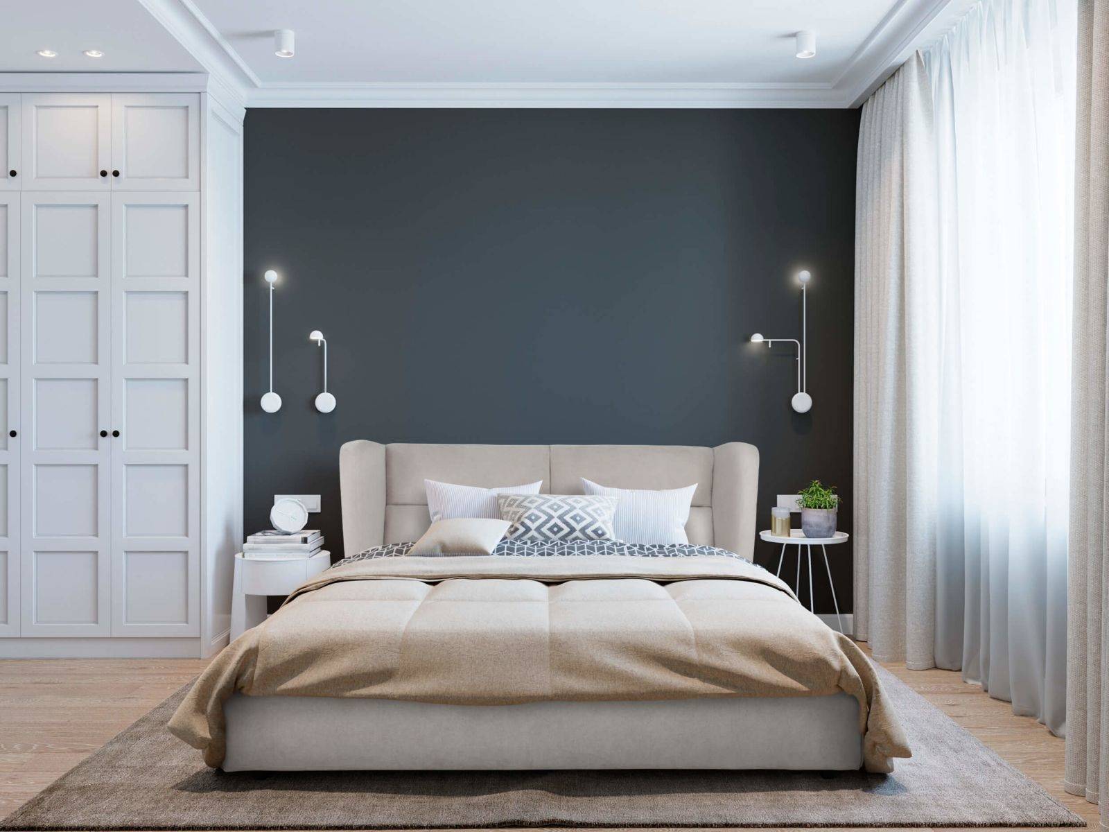Аналогичный выбор должен быть и в том случае, когда как таковой спальни в квартире нет, а есть лишь функциональная зона, где расположена кровать.