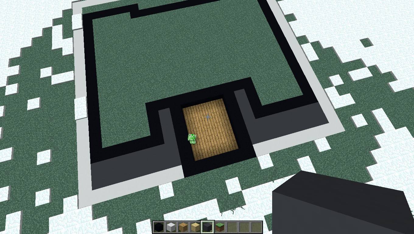- Для начала сделайте прямоугольник (в будущем бассейн) из черного бетона шириной пять на семь блоков. Потом прокопайте 2 слоя земли и на нижнем слое заделайте все дубовыми досками.