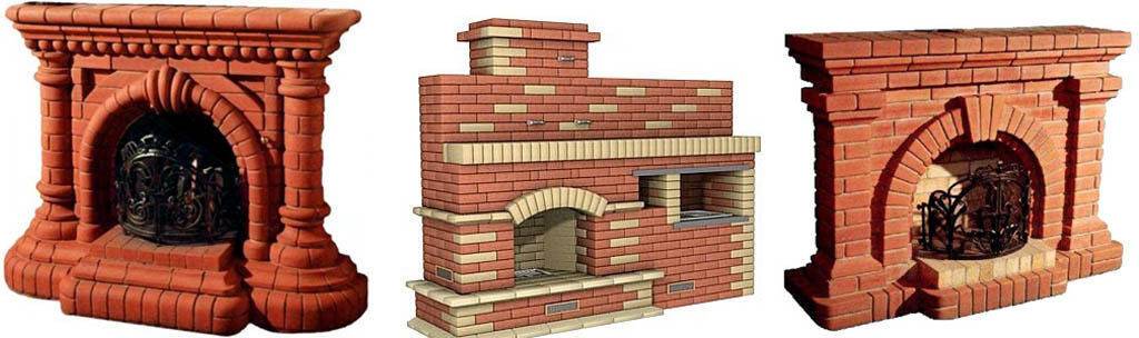 Уличный камин, возводимый из кирпича, конструктивно состоит из следующих частей: