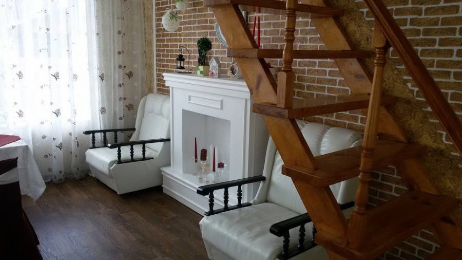 Они плотно прилегают к стене. Подобный вариант используют для обустройства просторных домов. Для изготовления используют кирпич, ракушечник или шлакоблок.