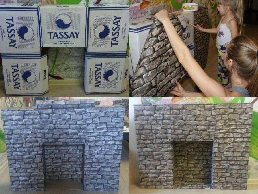 №1. Фальш-камин из картонных коробок