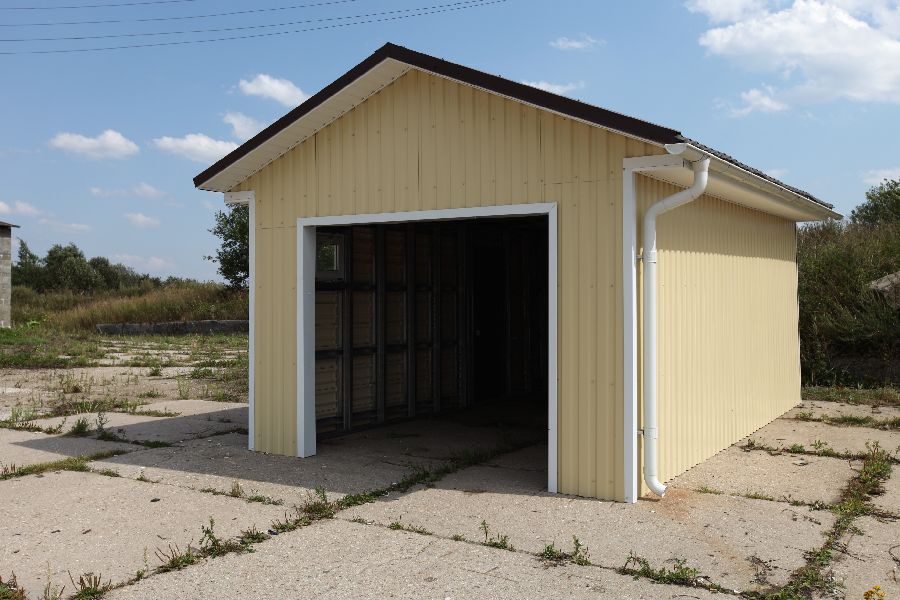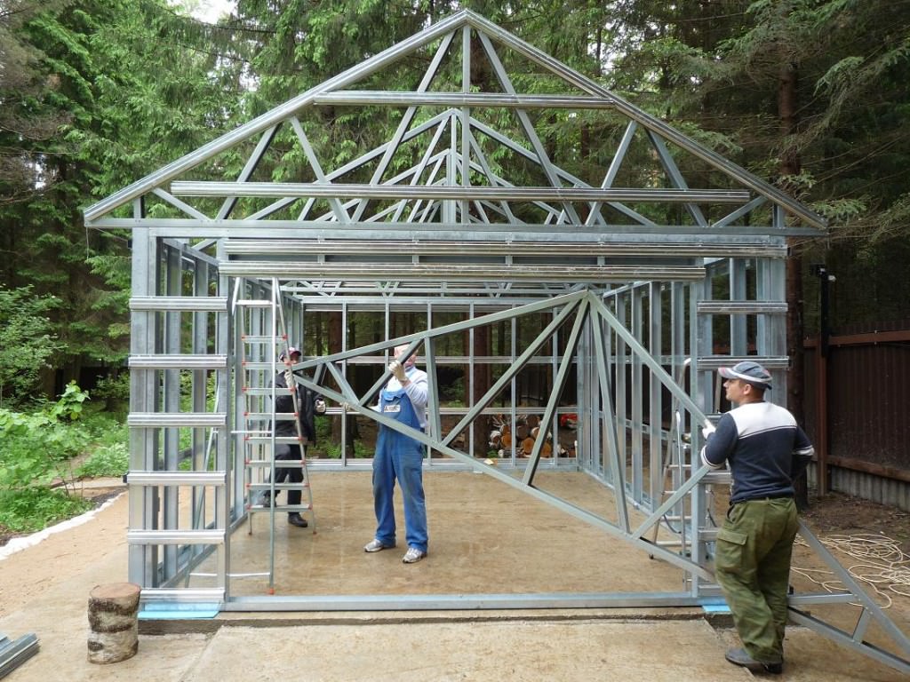 Каркас можно изготавливать и из других материалов, например, металлической профилированной трубы. В качестве обшивки для такого строения используются пятимиллиметровые металлопрофильные листы. Такое здание устойчиво к возгораниям, однако каркас требует дополнительной обработки средствами от ржавчины.