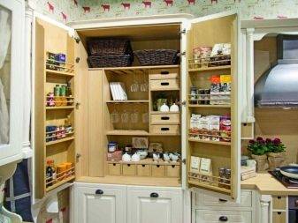 Достоинства данной мебели оценили многие, ведь так удобно хранить банки с консервацией, овощи, посуду и различные хозяйственные мелочи.