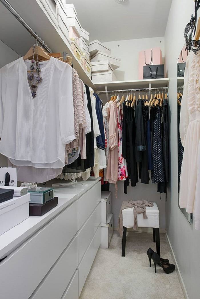 Неплохо, если в кладовке предусмотрены выдвижные ящики для хранения мелких принадлежностей – это очень удобно и практично. Особенно если кладовка используется в качестве гардеробной.