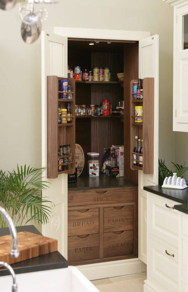 Еще один отличный способ упорядочить продукты на кухне – использовать поворотные конструкции и предусмотреть полки на дверях.