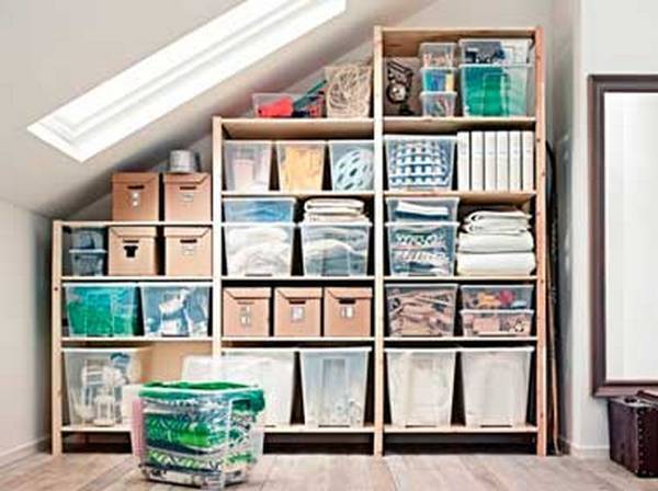 Надо продумать схему стеллажей, размер полок и ящиков, план размещения предметов с целью рационального использования свободного пространства и удобства пользования.
