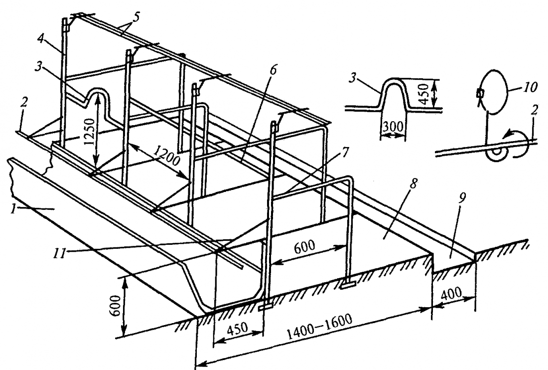 Обычно вдоль здания располагается проход. Его ширина в большинстве случаев не превышает полутора метров. Направо и налево от него стоит стойловое оборудование.