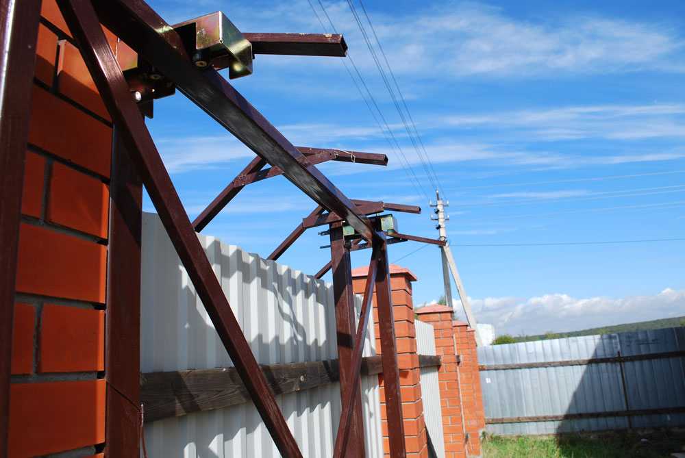 При расчете консольных ворот нужно учитывать, что они состоят из рабочей части, которая перекрывает проем, и технической. Их общая длина должна быть больше ширины проема на 40-50%. При такой пропорции обеспечивается прочное крепление и правильная работа всех элементов конструкции.