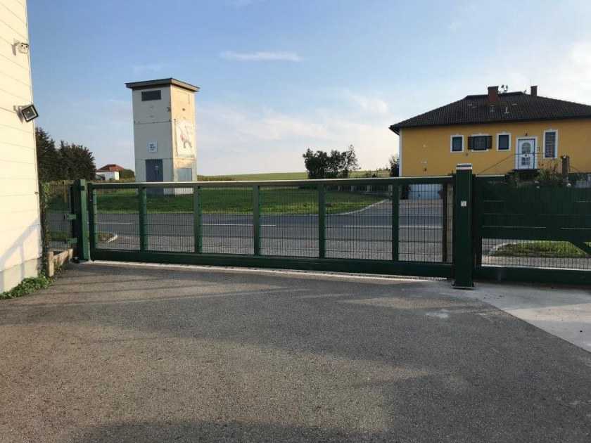 Несмотря на сложность изготовления и более высокую стоимость чаще всего выбирается конструкция сварных откатных ворот консольного типа. Их основой является балка с установленным полотном, которая сдвигается по роликам, размещенных сбоку от проема. Для установки со стороны открытия необходимо свободное место в 1,5 раза превышающее ширину створки.