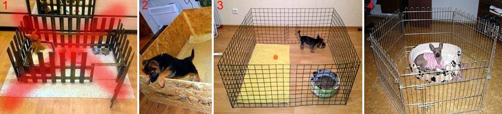 Вольеры для содержания собак в квартирных условиях дорого стоят. Их размеры индивидуальны и подбираются в соответствии с габаритами питомца. Чтобы не тратить лишних денег, можно смастерить эту конструкцию своими силами. Для маленького щенка достаточна высота 40–45 см и площадью до 100 квадратных см. Для мелких пород собак можно изготовить комнатный домик высотой около 80 см, площадью не менее полутора метров (если площадь квартиры позволяет, можно сделать и больше). Меньшую площадь вольера делать не стоит, так как вашему четвероногому любимцу необходимо пространство для сна, игр, туалета, миски с кормом и водой.
