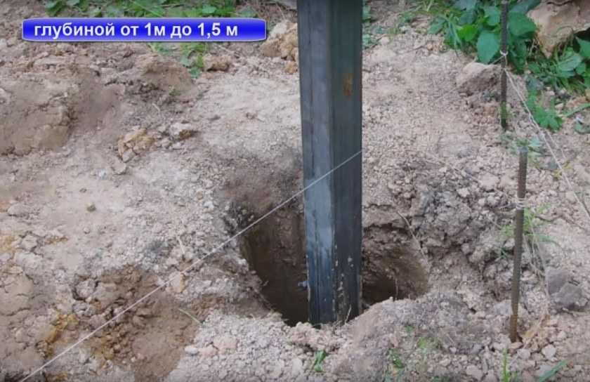 В качестве опорных столбов вашего забора могут послужить металлические трубы как круглого, так и прямоугольного сечения. Заказывая опоры, следует учесть, что в идеале 1/3 длины столба будет закопана. Например, для забора высотой 2 м, потребуется фундаментная яма глубиной 1-1,5 м (глубина промерзания грунта), то есть заказываем трубы длиной не менее 3 м.