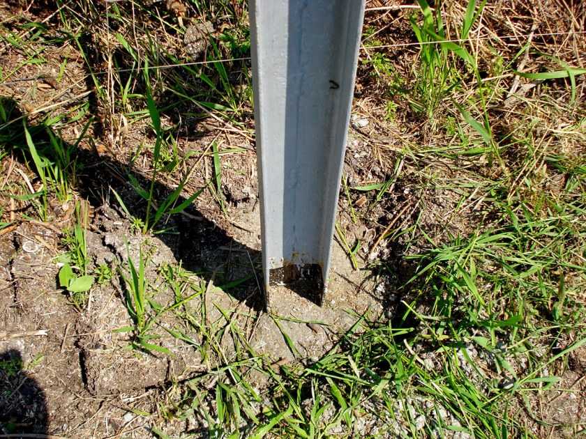 - часть столба, предназначенную для погружения в землю, очищают от ржавчины, обезжиривают, обрабатывают праймером по металлу и закрашивают битумной мастикой. К установке приступают после просыхания защитного слоя;