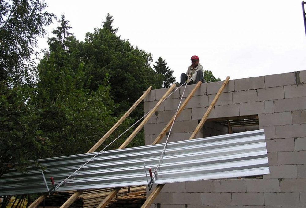 для поднятия листов на крышу рекомендуется пользоваться специальными конструкциями или веревками, чтобы предотвратить возможное их повреждение, причем если все же будет нарушена целостность полимерного покрытия, то желательно заменить лист или покрыть его защитными составами;