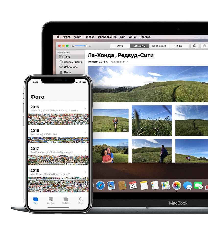 У Apple очень комфортный и интеллектуальный поиск по фото. Программа умеет искать события, даты и людей на фотографиях, используя геоданные и время съемки, а также распознавание лиц. В программе Фото есть уникальная вкладка Воспоминания, на которой программа сама составляет вам подборки фотографий при помощи интеллектуальных алгоритмов — просто откройте ее и программа поможет вам вспомнить свадьбу сына или поездку на Алтай в августе 2016.