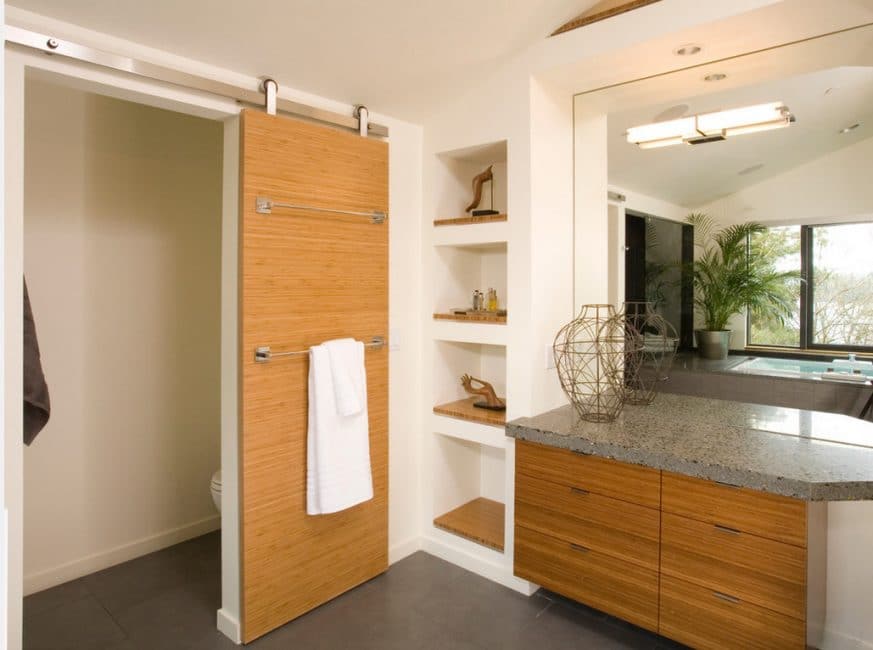 Раздвижные, распашные двери, а также полотна в форме гармошки также будут отличным решением.