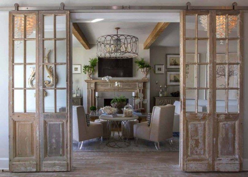 - К примеру, универсальные белые двери с резьбой и узорами или с эффектом «старого дерева» впишутся практически в любой интерьер.