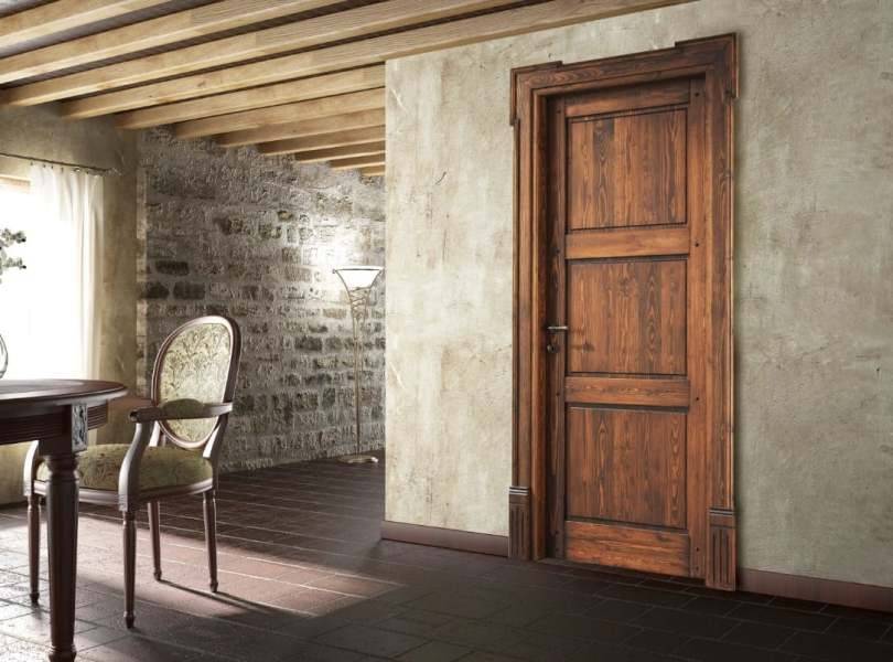 - Лучше ведут себя и в эксплуатации, и с эстетической точки зрения, изделия из натурального дерева. Деревянные изделия – вечная классика. Испортить внешний вид такой двери может только неверно подобранное обрамление, поэтому хорошо, если и наличники, и плинтуса были выполнены из той же породы дерева (фото).