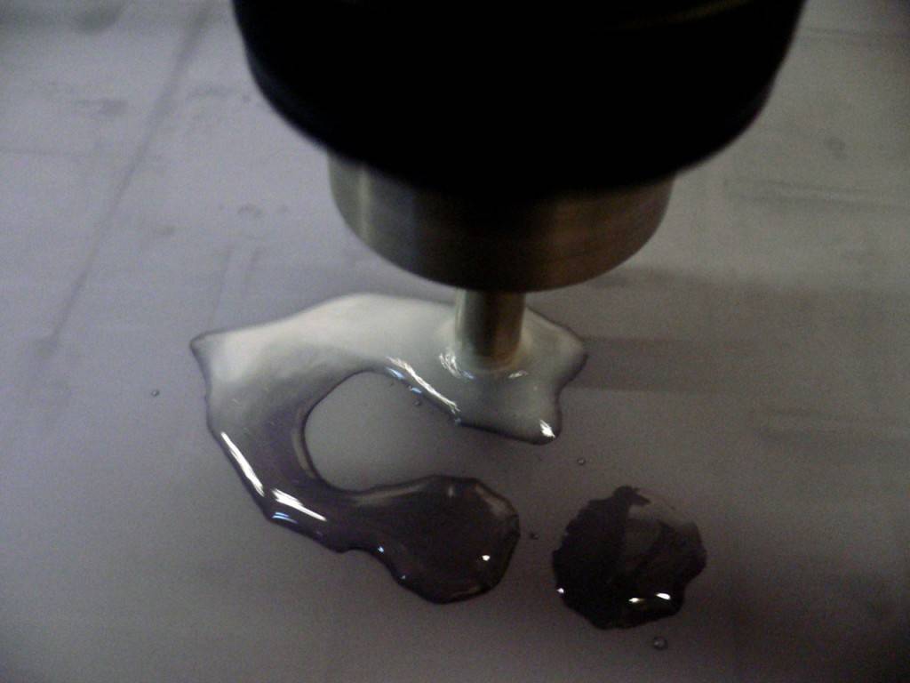 Не нужно очень много лить, достаточно, чтобы на поверхности материала была лужа, которая прикрывает будущее отверстие.