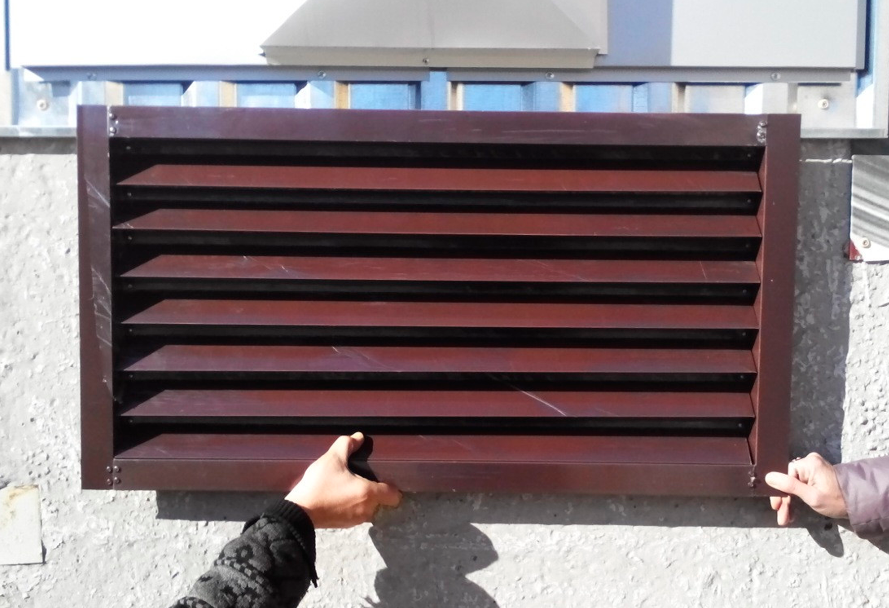 - Входное вентиляционное отверстие закрывают решетками. Это делается с целью защиты от загрязнений, листьев и мелких грызунов. Решетка устанавливается снаружи.