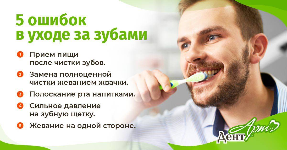 - Обработку полости рта требуется проводить после каждой трапезы. В идеале лучше воспользоваться щеткой и пастой, но если этот вариант недоступен, подойдет ополаскиватель или жевательная резинка.