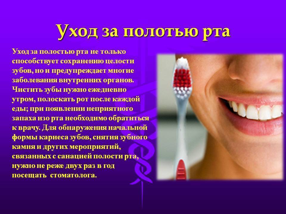 Соблюдение гигиены позволяет поддерживать здоровье полости рта. Для каждого человека представленные ниже правила должны войти в привычку: