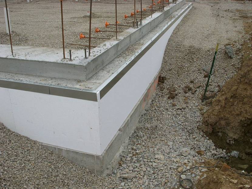 Вместе с утеплением, жидкий ППС дополнительно защищает ещё и от попадания влажности. Достаточно нанести слой в 5 см чтобы обеспечить надёжную защиту фундамента от попадания внутрь холода и воды. Минусом является высокая стоимость материала и необходимость нанесения при помощи специальной техники.