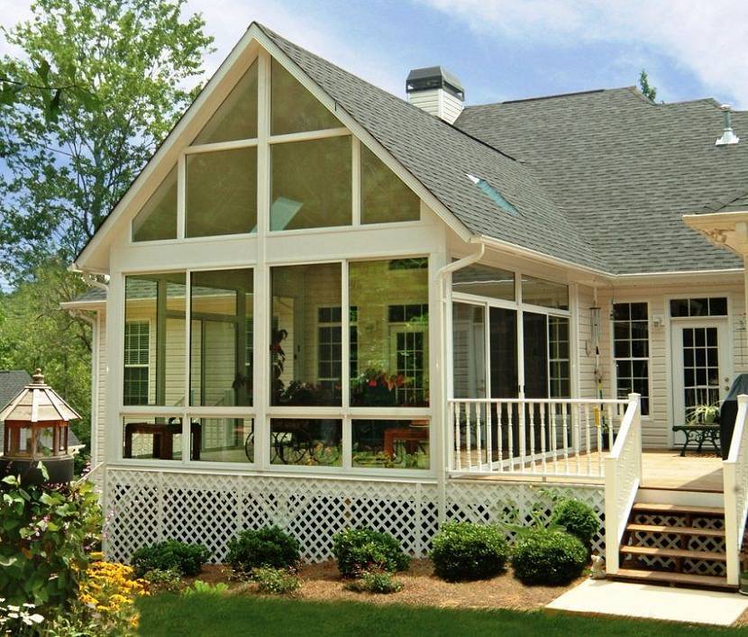 Помимо формы предстоит определить и тип веранды – открытая она будет или закрытая. Закрытые веранды к дому более практичны в холодной климатической зоне. Они также могут использоваться для временного хранения различных вещей или даже пищевых продуктов в зимнее время.