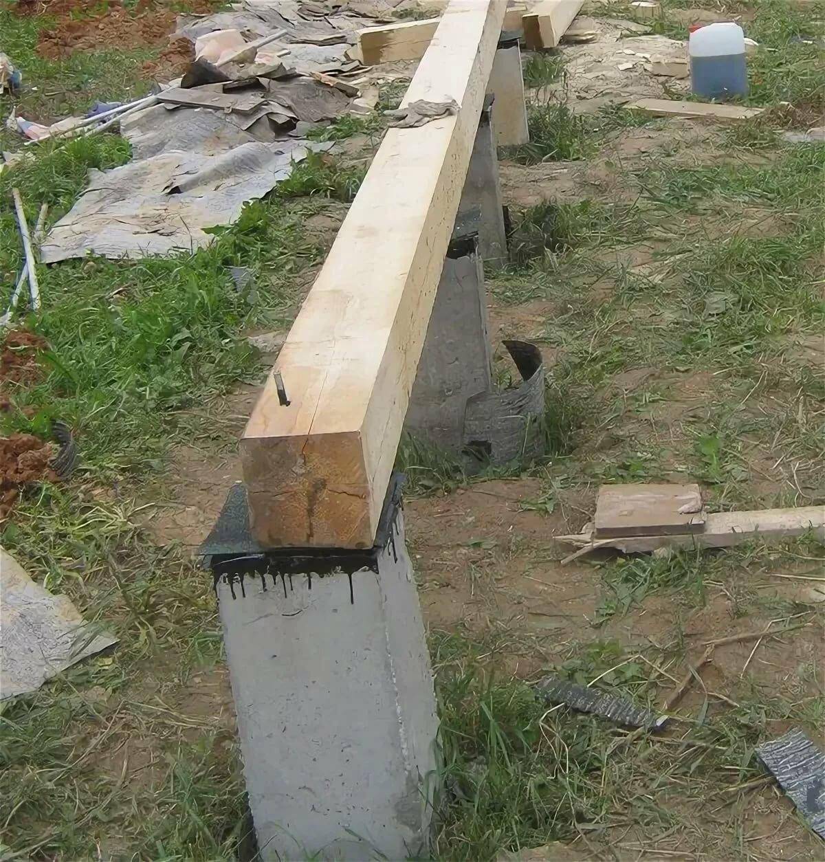 веранда должна равномерно опираться на фундамент, для этого важно разместить все опоры на одном уровне, чтобы защитить их от влаги воспользуйтесь битумной мастикой и рулонным гидроизолятором.