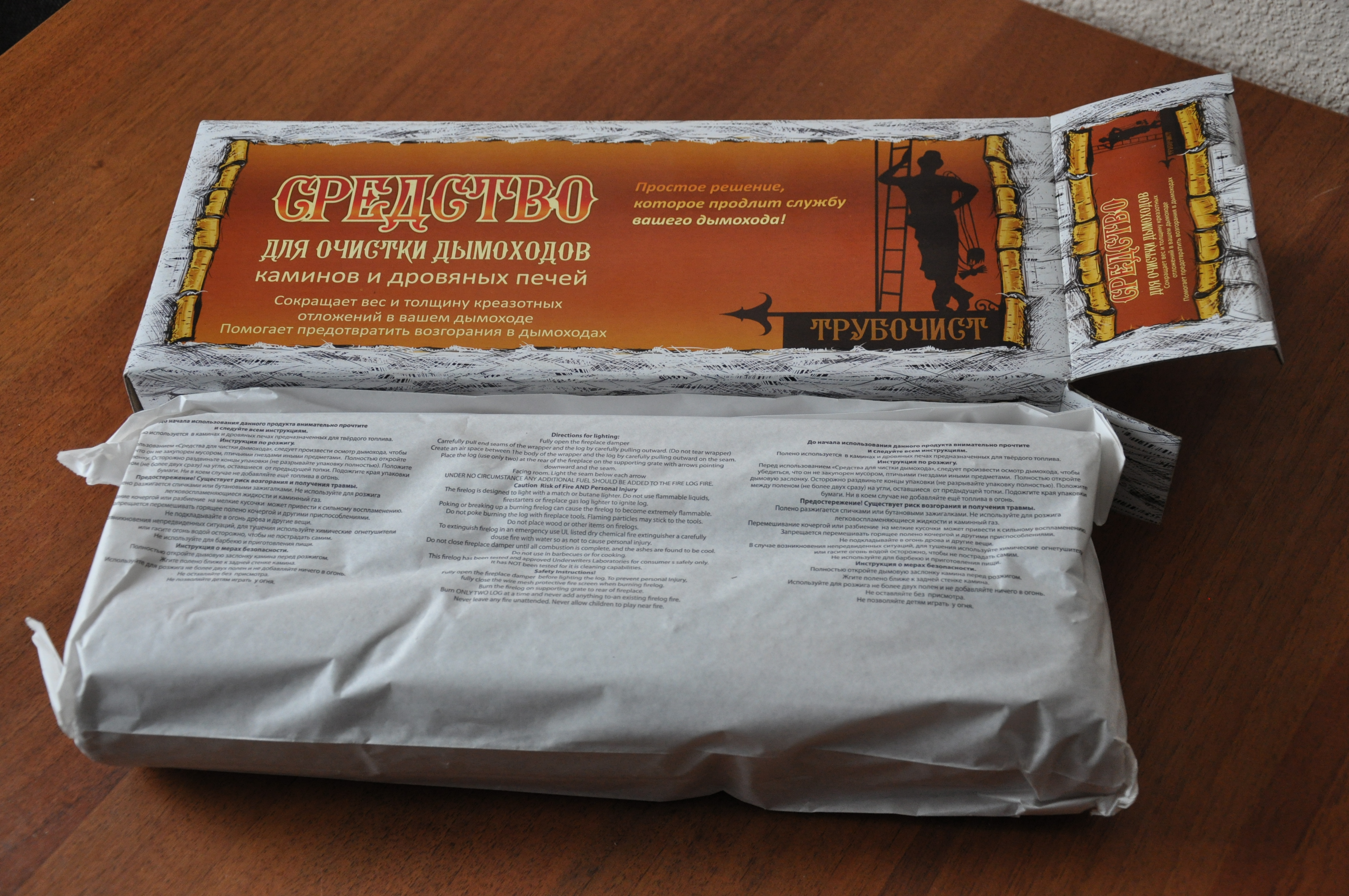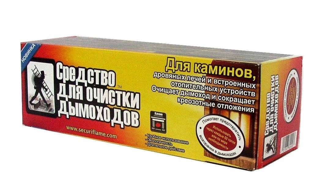 - Картонная коробка – поджигается в топке. Препарат содержит специальные вещества, которые растворяют приставшие к трубе продукты горения. После чего сажа падает или уходит вместе с дымом. После сгорания коробки эффект будет сохраняться на протяжении долгого времени.