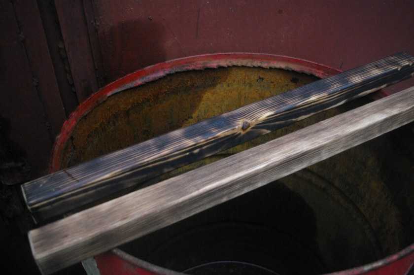 тушат, разбирают и получают три доски с состаренной поверхностью, похожей на