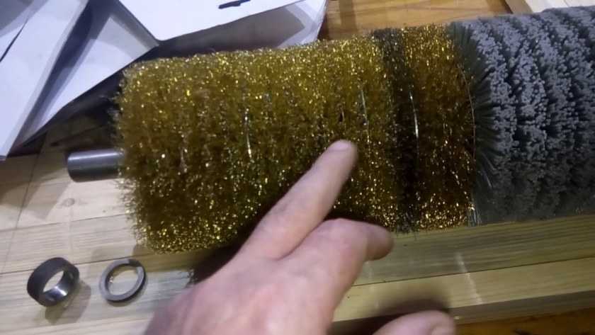 Щётки для браширования древесины «начерно» используют из стали или латуни, желательно с прямыми проволочками. Для шлифования выбирают синтетические щётки с абразивным напылением. Ну а для стадии полирования подходят щёточки с натуральным жёстким ворсом из сизаля или шерсти.