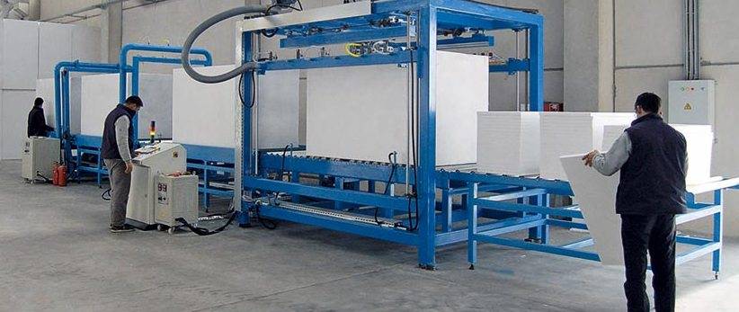 Для изготовления требуются гранулы полистирола. В их составе присутствует пентан и изопрен. Благодаря обработке газами, гранулы вспениваются и превращаются в легкие шарики. После этого их обдают паром, провоцирующим химические реакции. Вследствие этого пентан уходит из шариков. Из полученных полистирольных элементов при помощи пресса формируются плиты теплоизоляции.