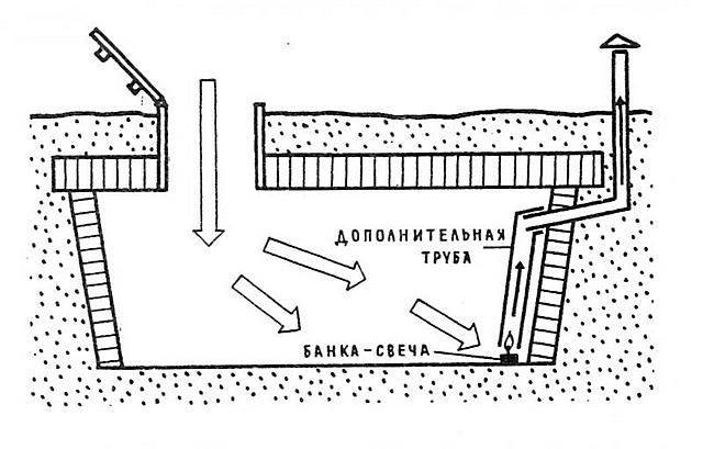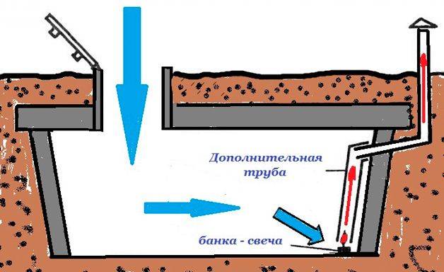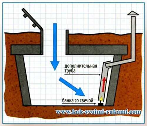 В случае, если погреб находится на некотором удалении от основных построек (отсутствует электроэнергия), то произвести его просушку можно при помощи обычной свечи. Для чего предварительно к вытяжной трубе (находящейся под потолком) временно добавляется сегмент аналогичной трубы с таким условием, чтобы его торец не доходил до пола на 5 – 10 см. Далее под эту трубу на негорючей подставке устанавливается зажженная свеча, которая прогревая воздух, обеспечивает хорошую его циркуляцию (теплые потоки стремятся вверх). После прогорания свечи следует установить новую и таким образом добиться качественного выведения влаги из овощехранилища. Порой, дабы получить движение воздушных масс, энергии свечи бывает недостаточно, и тогда в начальный момент под трубу можно поднести зажженную бумагу или сухой спирт. А уже после – использовать свечу.