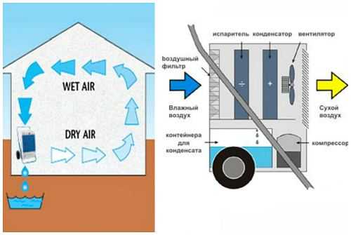 Сушка погреба при помощи осушителя