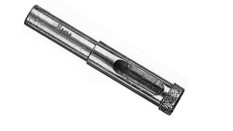 Сверление происходит со скоростью не более 800 об./мин. Свёрла для этой работы подходят алмазные и победитовые, они имеют специально разработанную форму наконечника: стреловидную, в виде короны. Процесс основан на принципе трения абразивов. Копьевидный наконечник имеет особый угол резки, который снижает поверхность соприкосновения материалов и препятствует расколу кафеля. Ударный режим дрели обязательно нужно отключить, чтобы поверхность не треснула.